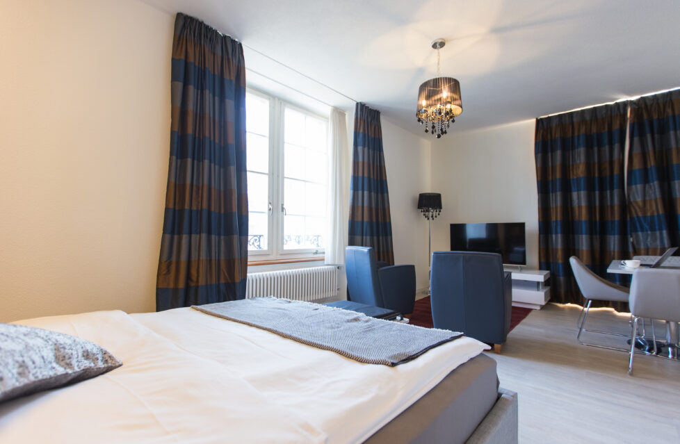 Die 42 Apartments «Zum Schiff» bieten ein rundum angenehmes Wohngefühl – ganz gleich, ob Sie einen Kurz- oder einen Langzeitaufenthalt planen. Unsere vollständig möblierten und hochwertig ausgestatteten 1- bis 3,5-Zimmer-Wohnungen variieren in der Grösse von 14 bis 80 Quadratmetern. Im «Zum Schiff» befinden sich auch gewerbliche Mieter aus dem Gesundheitsbereich. Möchten Sie eine Aromaöl-Massage geniessen, eine Akupunkturbehandlung oder einige Stunden Auszeit im Thermalbad? Lassen Sie es sich gut gehen!