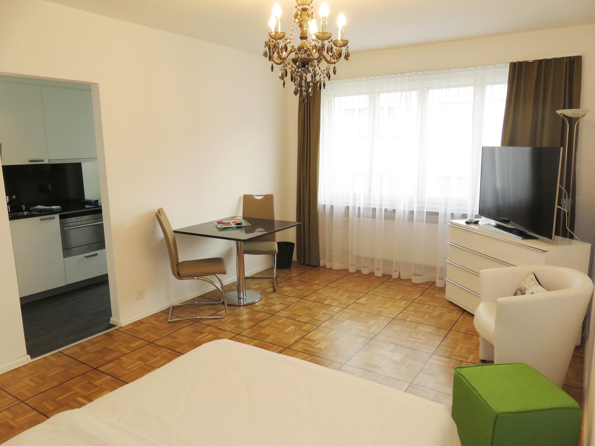 Die Liegenschaft befindet sich im ruhigen Wohnquartier Gundeldingen in der Nähe des Bahnhofs Basel. Die Güterstrasse mit diversen Restaurants und Geschäften ist nur wenige Gehminuten entfernt. Unsere zwölf möblierten 1,5- bis 3,5-Zimmer-Wohnungen sind zwischen 34 und 69 Quadratmeter gross und verfügen über eine moderne Küche mit Geschirrspüler sowie einen Balkon.