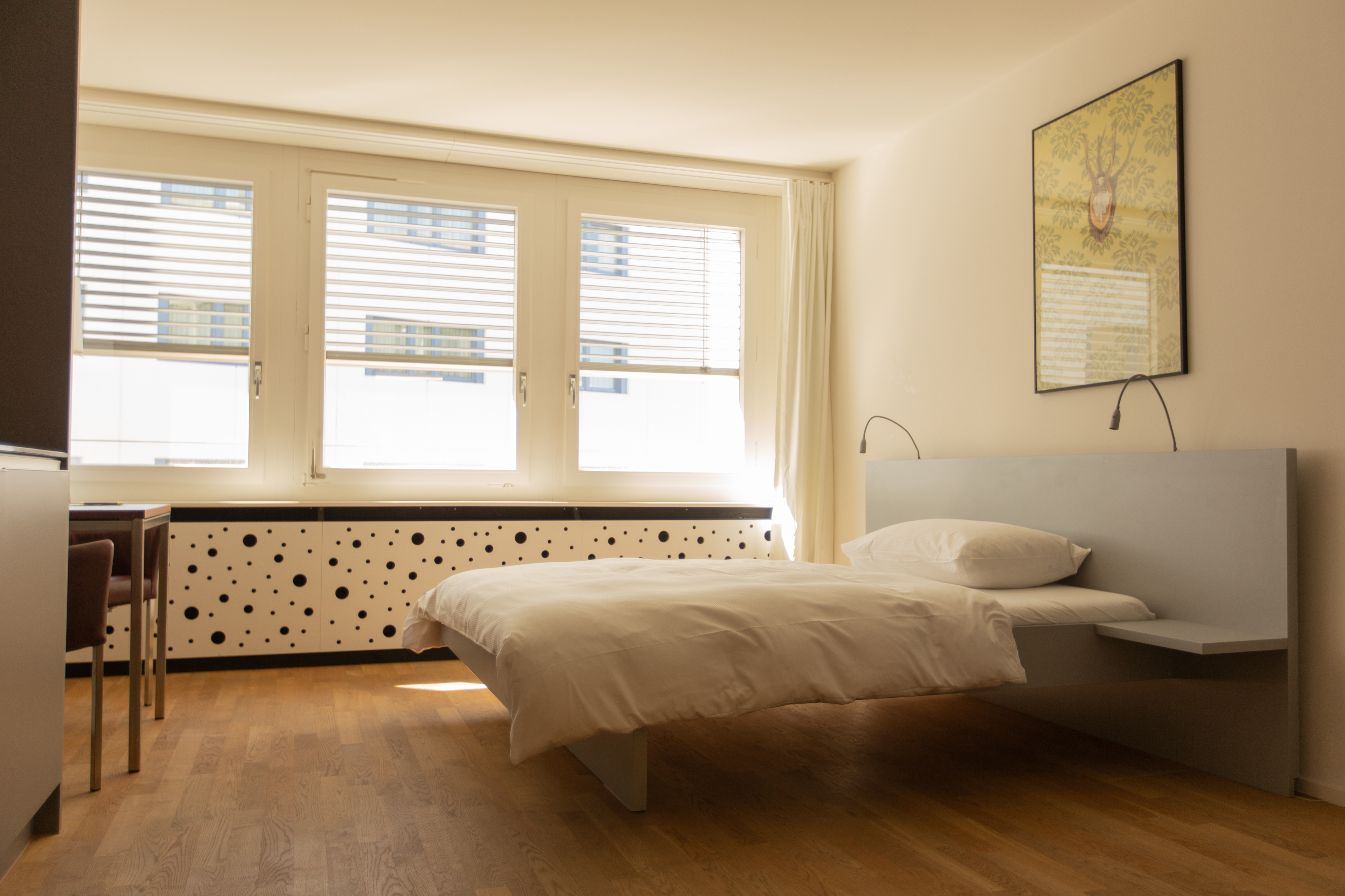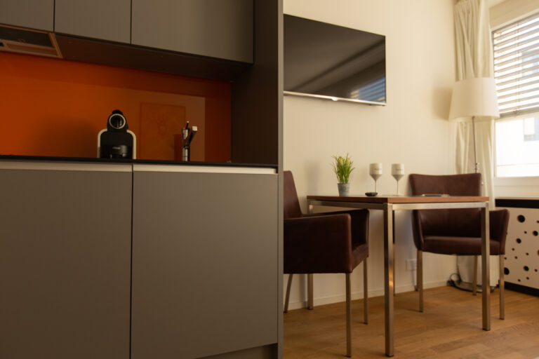 Unsere 34 möblierten 1-Zimmer-Wohnungen bieten Wohnflächen zwischen 16 und 25 Quadratmetern und liegen in unmittelbarer Nähe zur Messe Basel und zum Kongresszentrum. Von hier aus gelangen Sie bequem zu Fuss in die charmante Altstadt, an das Rheinufer sowie zu zahlreichen Supermärkten, Geschäften und Restaurants. Die zentrale Lage unserer Apartments macht sie zur perfekten Wahl für alle, die Wert auf Komfort und kurze Wege legen.