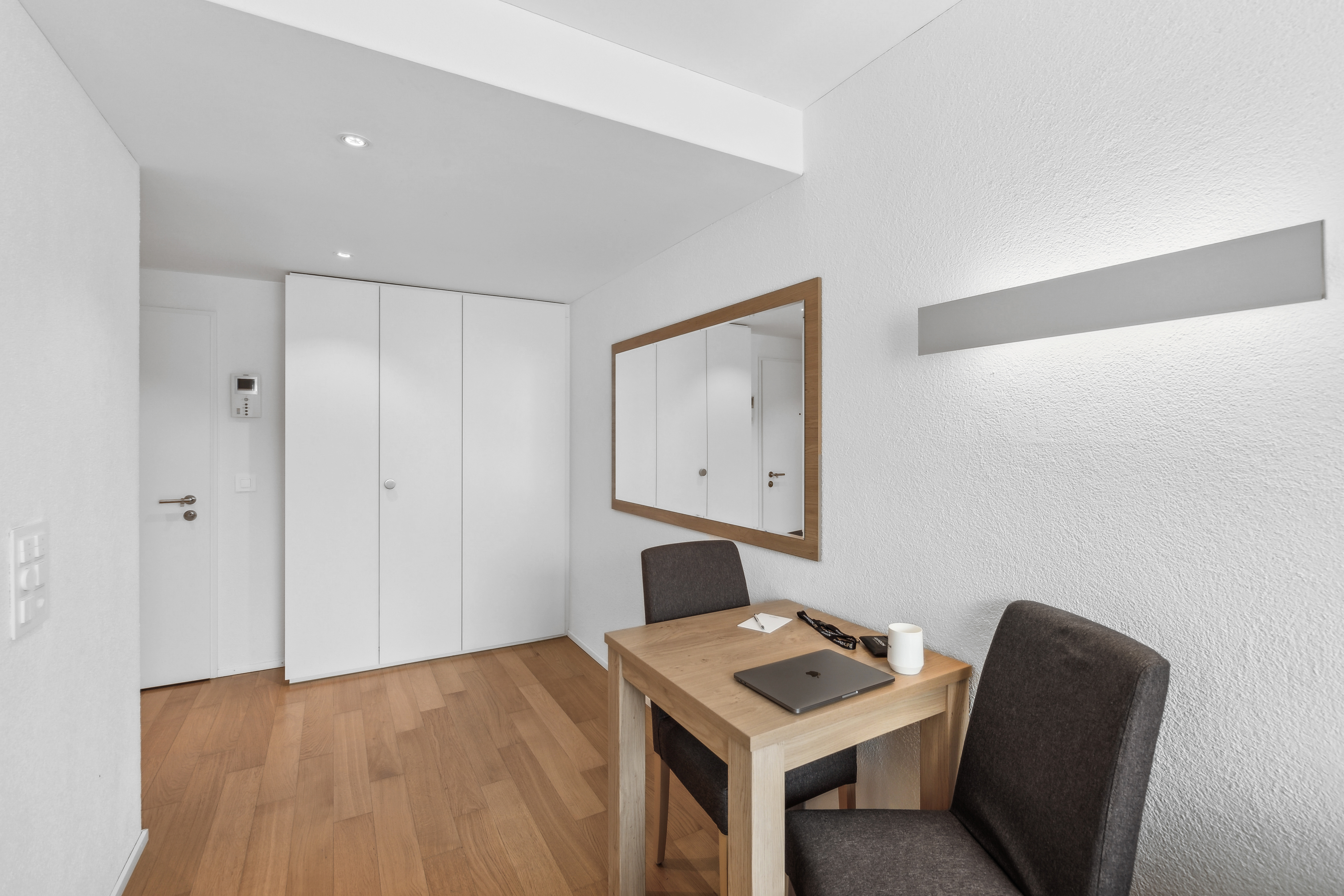 Unsere 63 möblierten Studios sind zwischen 24 und 37 Quadratmeter gross und mit allem Komfort ausgestattet, um Ihren Aufenthalt so angenehm wie möglich zu gestalten. Sie verfügen über eine offene Küche und ein Badezimmer sowie elektrische Storen. Zur Reinigung und Pflege Ihrer Wäsche steht Ihnen im Apartment ein praktisches Kombigerät für Waschen und Trocknen zur Verfügung. Was wünscht man sich mehr?