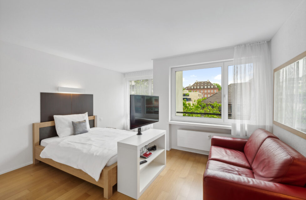 Unsere 63 möblierten Studios sind zwischen 24 und 37 Quadratmeter gross und mit allem Komfort ausgestattet, um Ihren Aufenthalt so angenehm wie möglich zu gestalten. Sie verfügen über eine offene Küche und ein Badezimmer sowie elektrische Storen. Zur Reinigung und Pflege Ihrer Wäsche steht Ihnen im Apartment ein praktisches Kombigerät für Waschen und Trocknen zur Verfügung. Was wünscht man sich mehr?