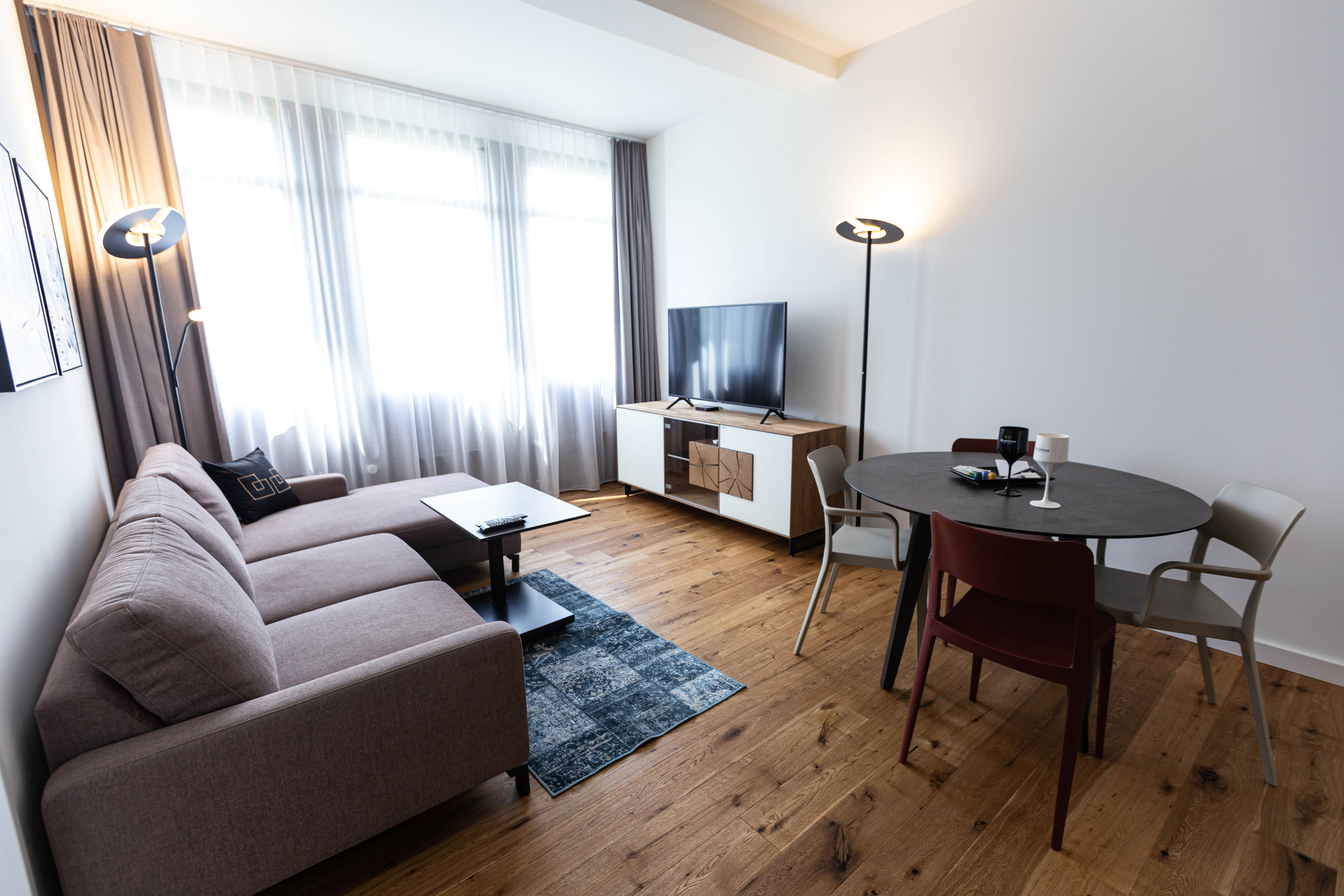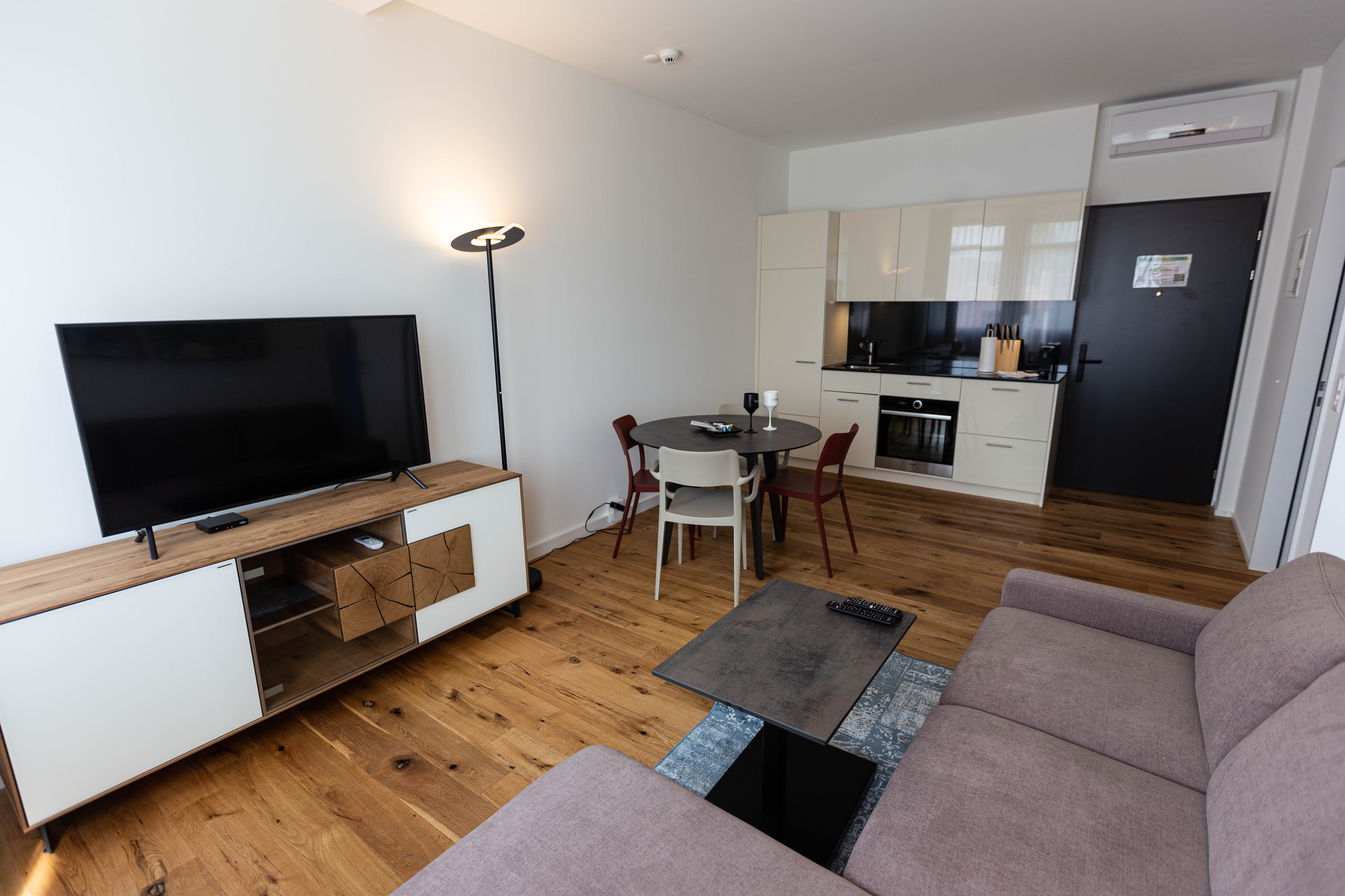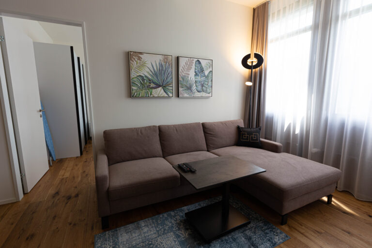 Unsere 46 Business Apartments an der Mattenstrasse 6 und 6a in Gümligen sind zwischen 37 und 91 Quadratmeter gross, umfassen 1,5 bis 3,5 Zimmer und sind verteilt auf drei Etagen in zwei modernen Industriegebäuden. Alle sind schlicht und stilvoll möbliert, jedes unserer Apartments haben wir mit viel Liebe zum Detail eingerichtet. Mit modernen Möbeln und hochwertigen Annehmlichkeiten – für ein erstklassiges Wohngefühl.