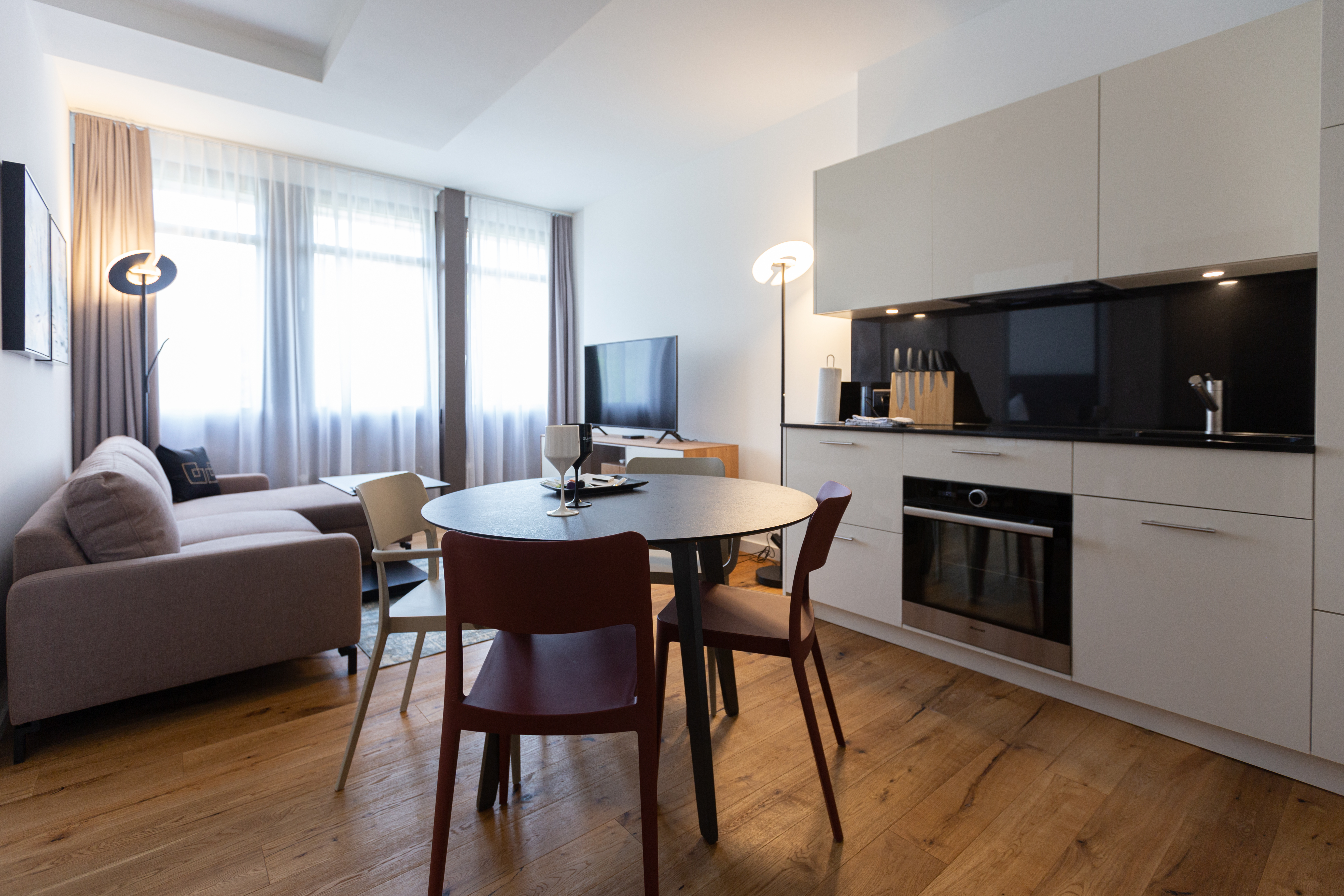Unsere 46 Business Apartments an der Mattenstrasse 6 und 6a in Gümligen sind zwischen 37 und 91 Quadratmeter gross, umfassen 1,5 bis 3,5 Zimmer und sind verteilt auf drei Etagen in zwei modernen Industriegebäuden. Alle sind schlicht und stilvoll möbliert, jedes unserer Apartments haben wir mit viel Liebe zum Detail eingerichtet. Mit modernen Möbeln und hochwertigen Annehmlichkeiten – für ein erstklassiges Wohngefühl.