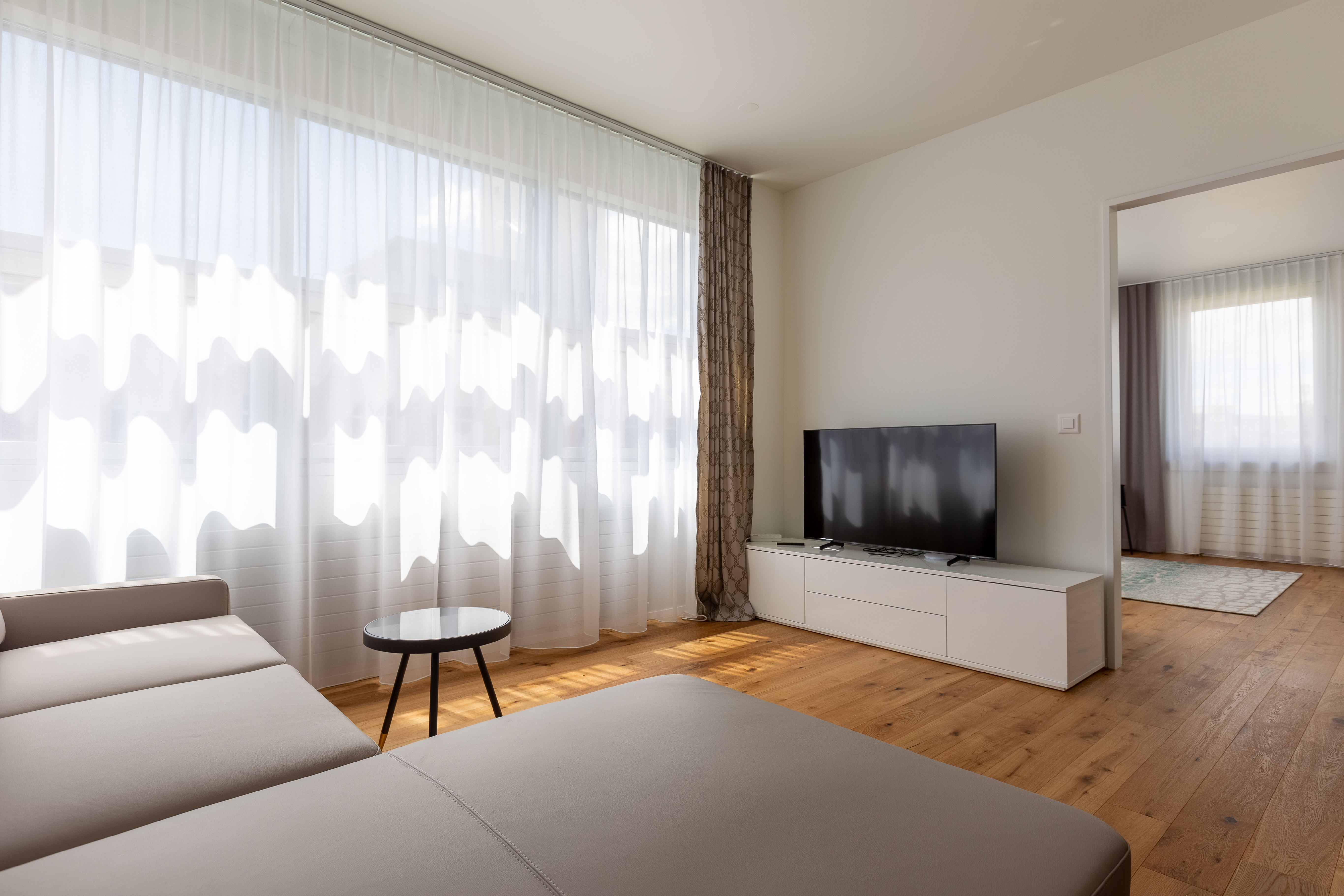 Unsere 46 Business Apartments an der Mattenstrasse 6 und 6a in Gümligen sind zwischen 37 und 91 Quadratmeter gross, umfassen 1,5 bis 3,5 Zimmer und sind verteilt auf drei Etagen in zwei modernen Industriegebäuden. Alle sind schlicht und stilvoll möbliert, jedes unserer Apartments haben wir mit viel Liebe zum Detail eingerichtet. Mit modernen Möbeln und hochwertigen Annehmlichkeiten – für ein erstklassiges Wohngefühl.