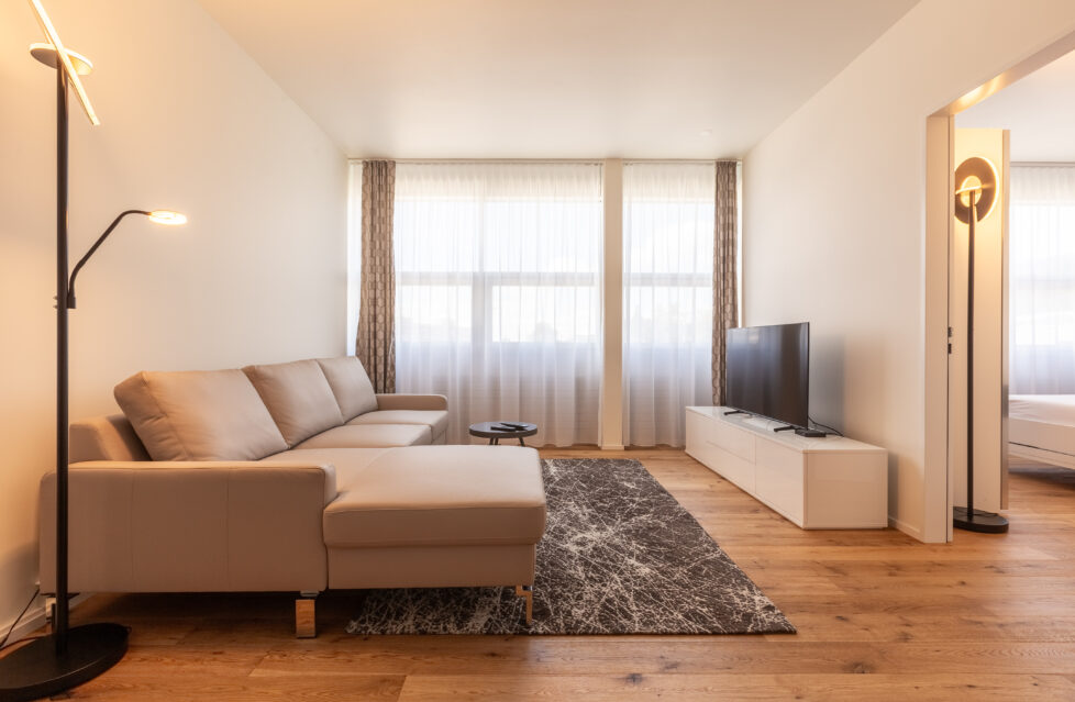 Unsere 46 Business Apartments an der Mattenstrasse 6 und 6a in Gümligen sind zwischen 37 und 91 Quadratmeter gross, umfassen 1,5 bis 3,5 Zimmer und sind verteilt auf drei Etagen in zwei modernen Industriegebäuden. Alle sind schlicht und stilvoll möbliert, jedes unserer Apartments haben wir mit viel Liebe zum Detail eingerichtet. Mit modernen Möbeln und hochwertigen Annehmlichkeiten – für ein erstklassiges Wohngefühl.