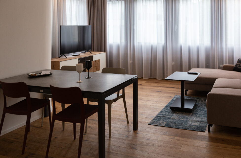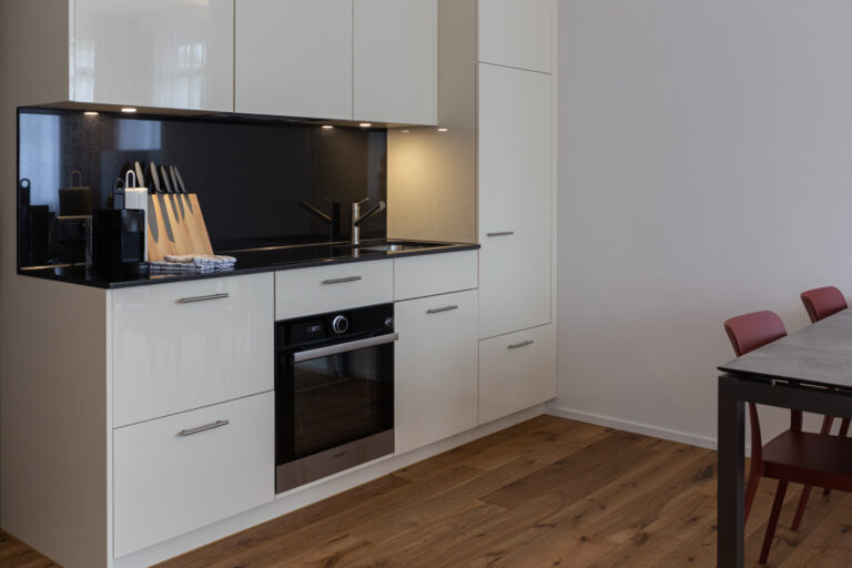 Unsere 46 Business Apartments an der Mattenstrasse 6 und 6a in Gümligen sind zwischen 37 und 91 Quadratmeter gross, umfassen 1,5 bis 3,5 Zimmer und sind verteilt auf drei Etagen in zwei modernen Industriegebäuden. Alle sind schlicht und stilvoll möbliert, jedes unserer Apartments haben wir mit viel Liebe zum Detail eingerichtet. Mit modernen Möbeln und hochwertigen Annehmlichkeiten – für ein erstklassiges Wohngefühl.