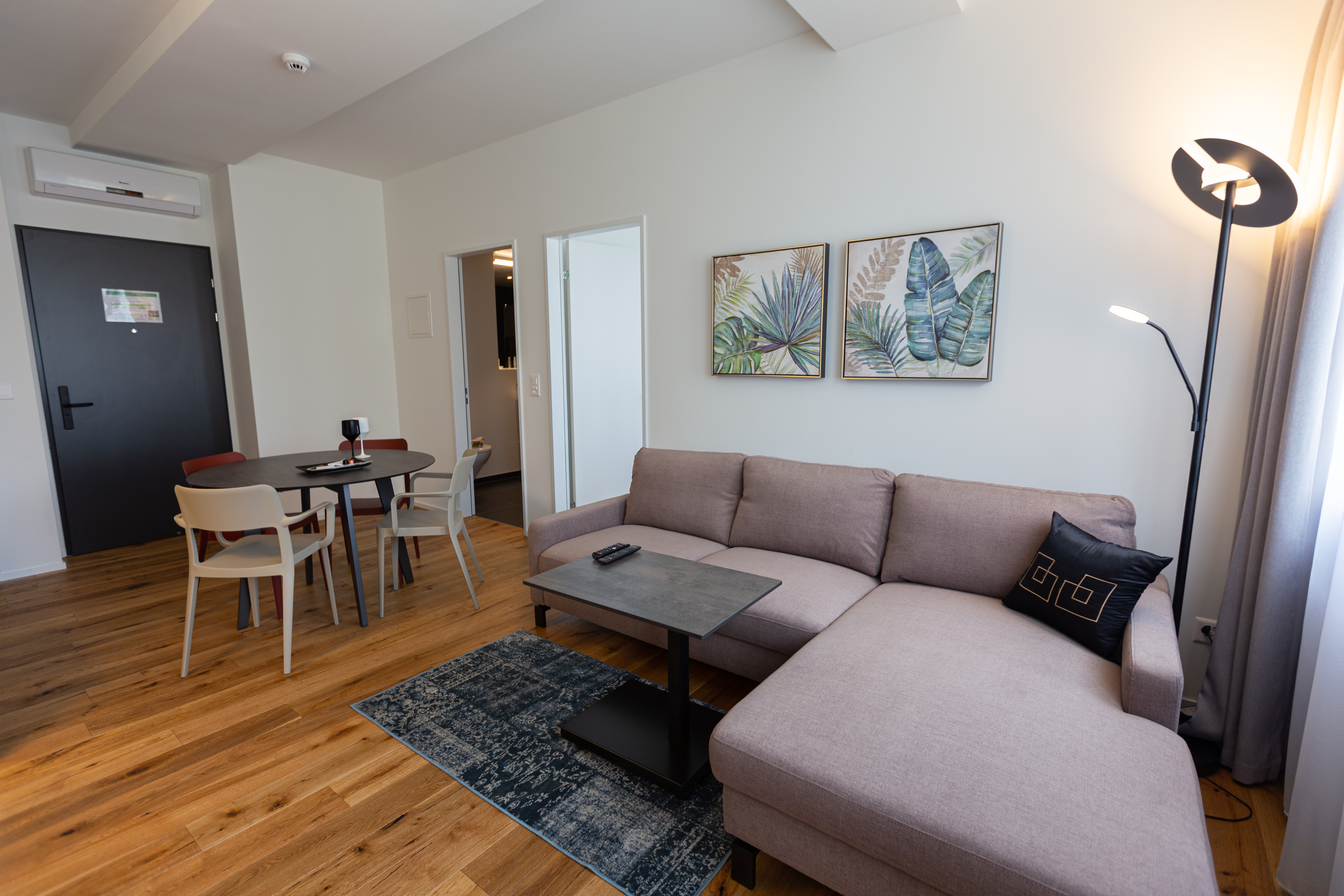 Unsere 46 Business Apartments an der Mattenstrasse 6 und 6a in Gümligen sind zwischen 37 und 91 Quadratmeter gross, umfassen 1,5 bis 3,5 Zimmer und sind verteilt auf drei Etagen in zwei modernen Industriegebäuden. Alle sind schlicht und stilvoll möbliert, jedes unserer Apartments haben wir mit viel Liebe zum Detail eingerichtet. Mit modernen Möbeln und hochwertigen Annehmlichkeiten – für ein erstklassiges Wohngefühl.