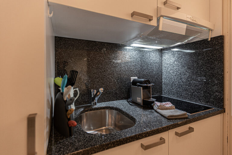 - komplett ausgestattete Küche mit Nespresso-Kaffeemaschine; wenige Apartments ohne Küche, jedoch mit Kühlschrank und Wasserkocher