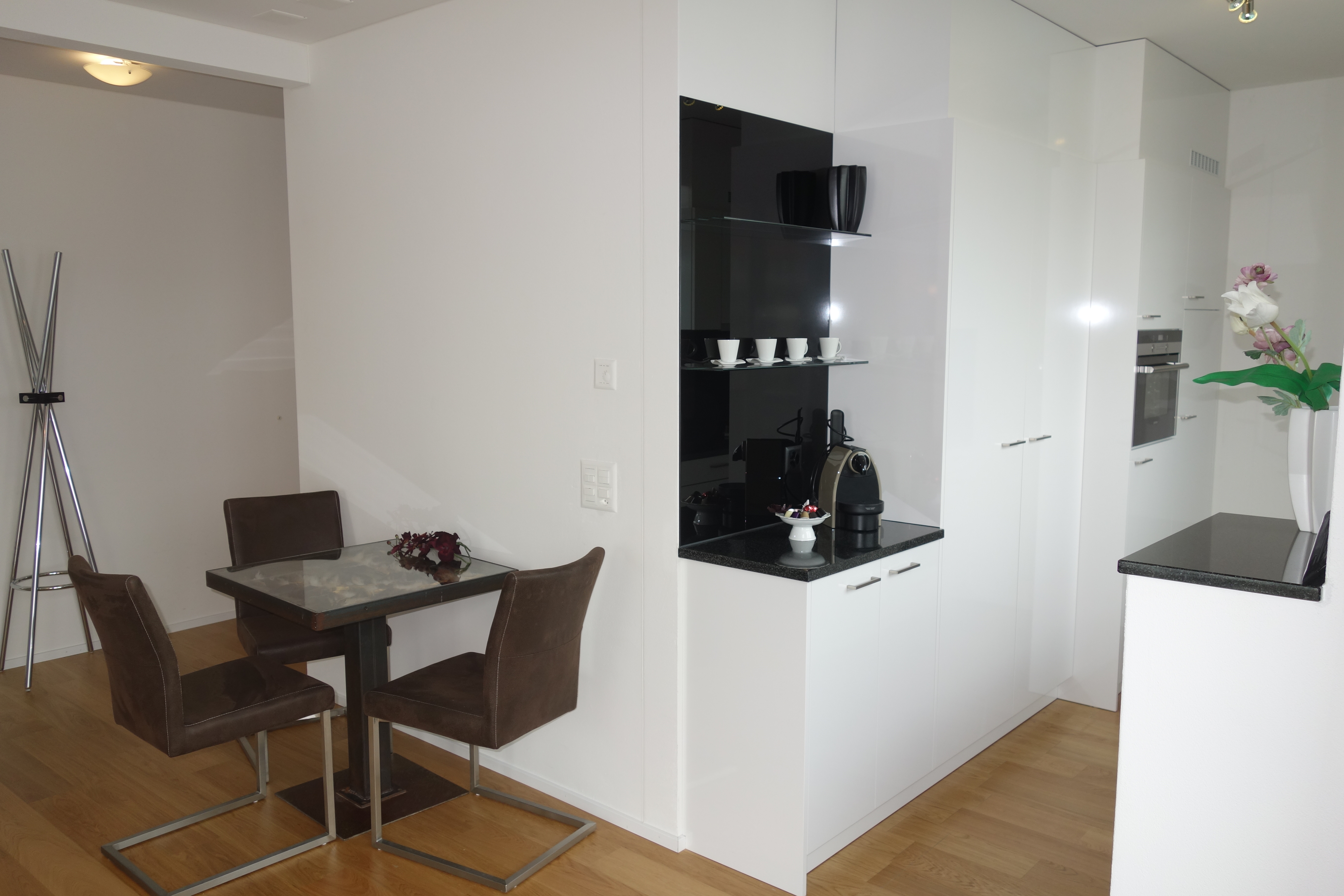 • komplett ausgestattete Küche mit Nespresso-Kaffeemaschine; wenige Apartments ohne Küche, jedoch mit Kühlschrank und Wasserkocher