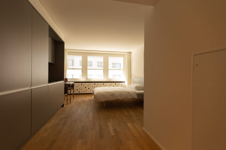 Our 34 furnished studio apartments each offer living spaces measuring between 16 and 25 square metres and are situated close to Exhibition Center Basel and Congress Center Basel. The charming old town, the banks of the Rhine and numerous supermarkets, shops and restaurants are also within a short walking distance. The central location of our apartments makes them a perfect choice for people who value comfort and being close to the action.