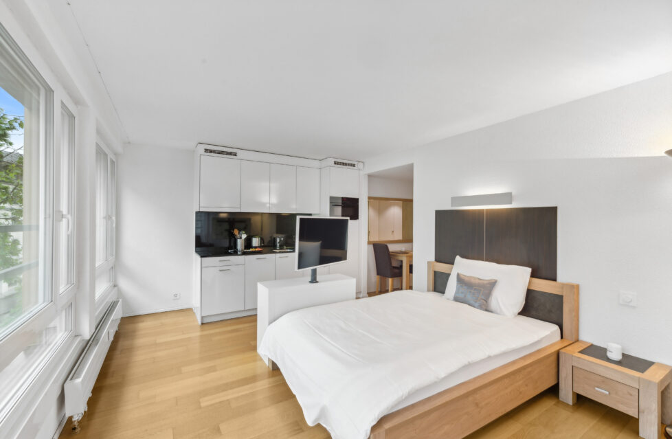 Our 63 furnished apartments each measure between 24 and 37 square metres and come fully equipped with every comfort needed to make your stay as pleasant as possible. They each feature an open-plan kitchen, a bathroom and electric blinds. To ensure that you can take care of your laundry, each apartment comes with a practical washer-dryer combi appliance. There’s everything you could possibly need.