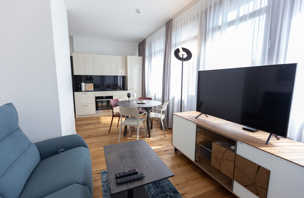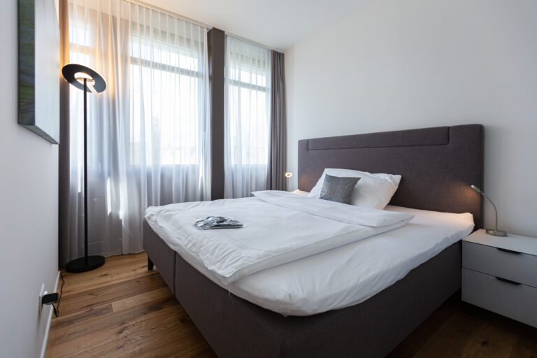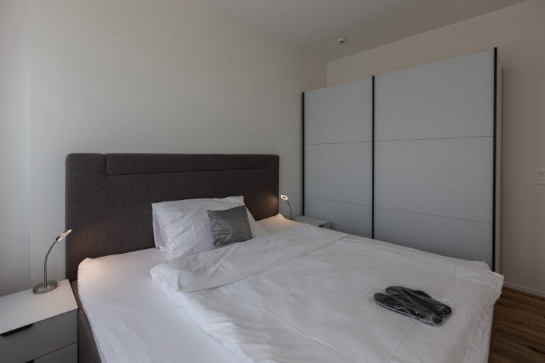 Our 46 business apartments at Mattenstrasse 6 and 6a in Gümligen each measure between 37 and 91 square metres, contain 1.5 to 3.5 rooms and are spread over three floors in two modern industrial buildings. All of the apartments are simply and stylishly furnished with a meticulous attention to detail. Modern furnishings and high-quality amenities create a truly first-class home-from-home feeling.