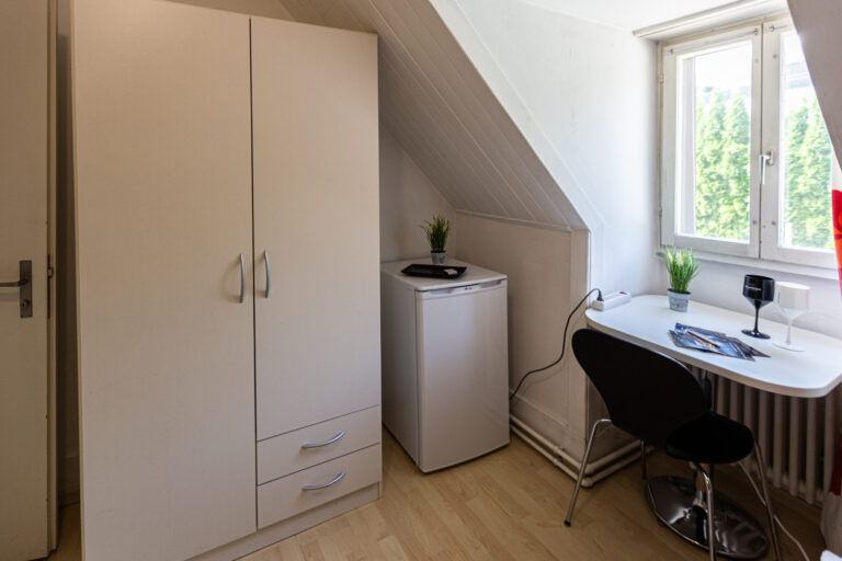 Step inside and immediately feel at ease – experience the relaxed atmosphere of the Felsental apartment building. Situated in green surroundings, the three-storey building features a spacious communal terrace with a garden barbecue area. Each of the 25 rooms and studios are furnished, measure between 13 and 47 square metres, and come with their own bathroom, and, in some instances, a kitchenette. There are two fully equipped kitchens available for shared use.
