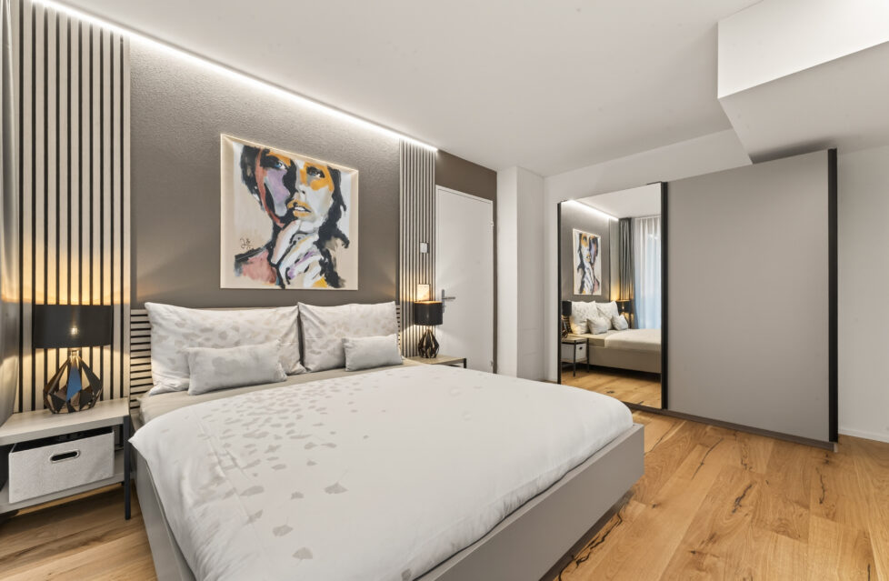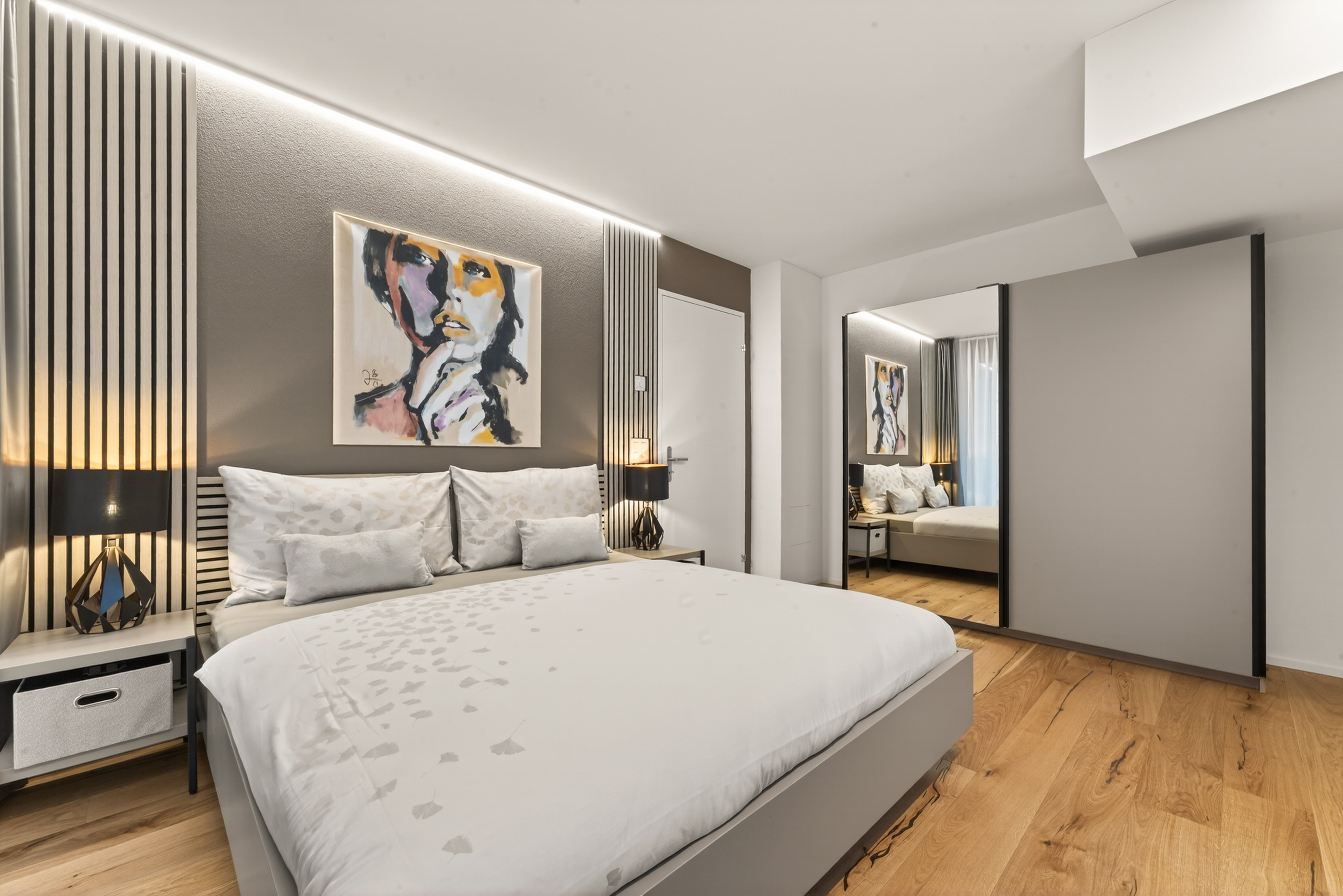 The property at Löwengraben 14 in Lucerne houses twelve 1 to 2.5-room business apartments, some of which have balconies and living spaces ranging between 26 and 87 square meters. Air-conditioned, modernly furnished and decorated with a great attention to detail, they create an atmosphere where you immediately feel at home. Regardless of whether you intend to stay for only a few days or for a longer period of time, these serviced apartments offer comfortable living in the heart of Lucerne’s beautiful old town.